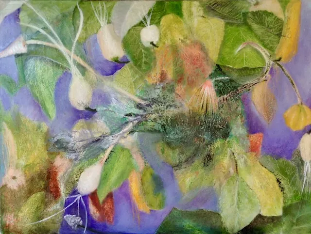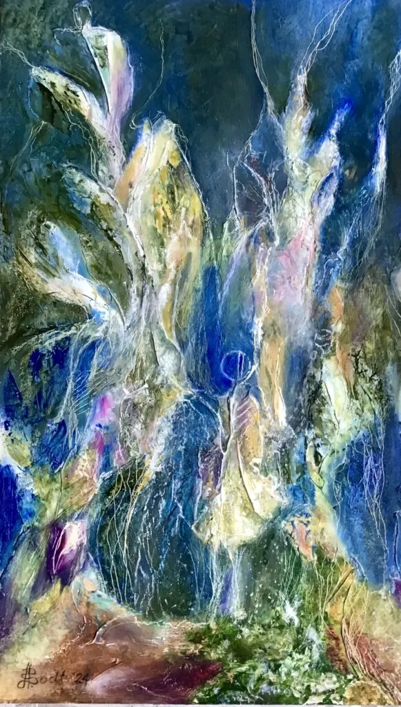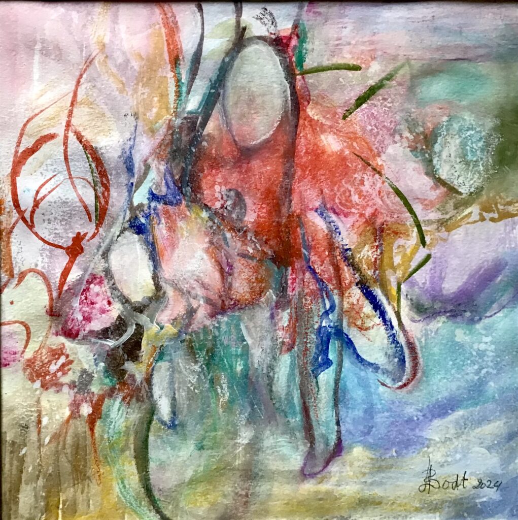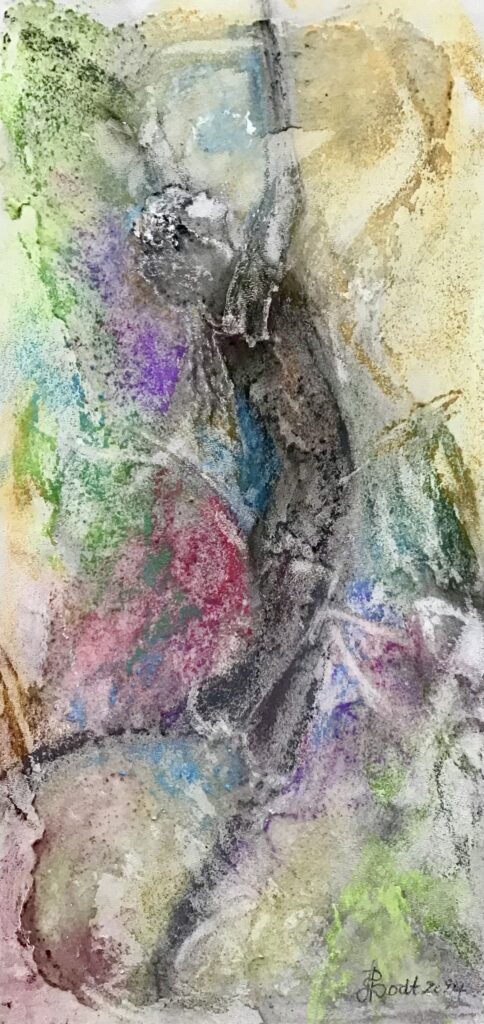 Dansende vrouw, 40x17cm, krijt op karton, 2025De fietser, 30x30cm, gouache op papier, 202448x68cm, olieverf en brons, 202070x90cm, olieverf en oliepastel, 202460x80cm, olieverf en oliepastel, 201660x80cm, olieverf, 2016“Vier seizoenen” 50×50, olieverf op 4 driehoekige canvas doekjes, 2013, op 4 manieren op te hangen.80x90cm, olieverf, 2009, verkocht80x90cm, oliepastel, 200980x90cm, oliepastel, 200960x80cm, gemengde techniek, 200750×50, gouache met grondverf, 2007Waiting for the children to be born, 60x80cm, mixed media, 2009, ntkIn de schulp, 40x45cm, krijt op papier, 2009, verkocht