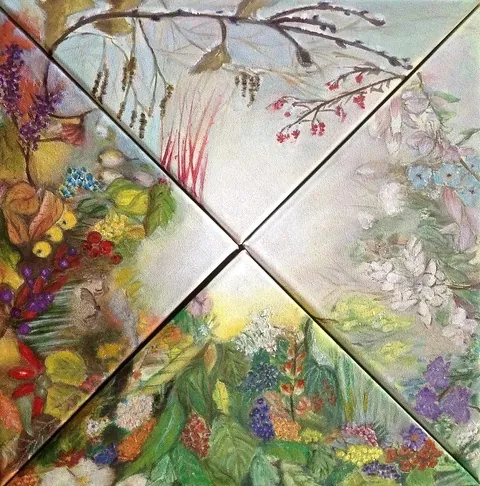 “Lente”, 70x90cm, gemengde techniek op canvas, 200970x90cm, gemengde techniek op canvas, 200970x90cm, gemengde techniek op canvas, 200970x90cm, gemengde techniek op canvas, 200970×90, gemengde techniek met olieverf, 202460x64cm, gemengde techniek op doek, 200850×60 cm, acryl op canvas, 2008